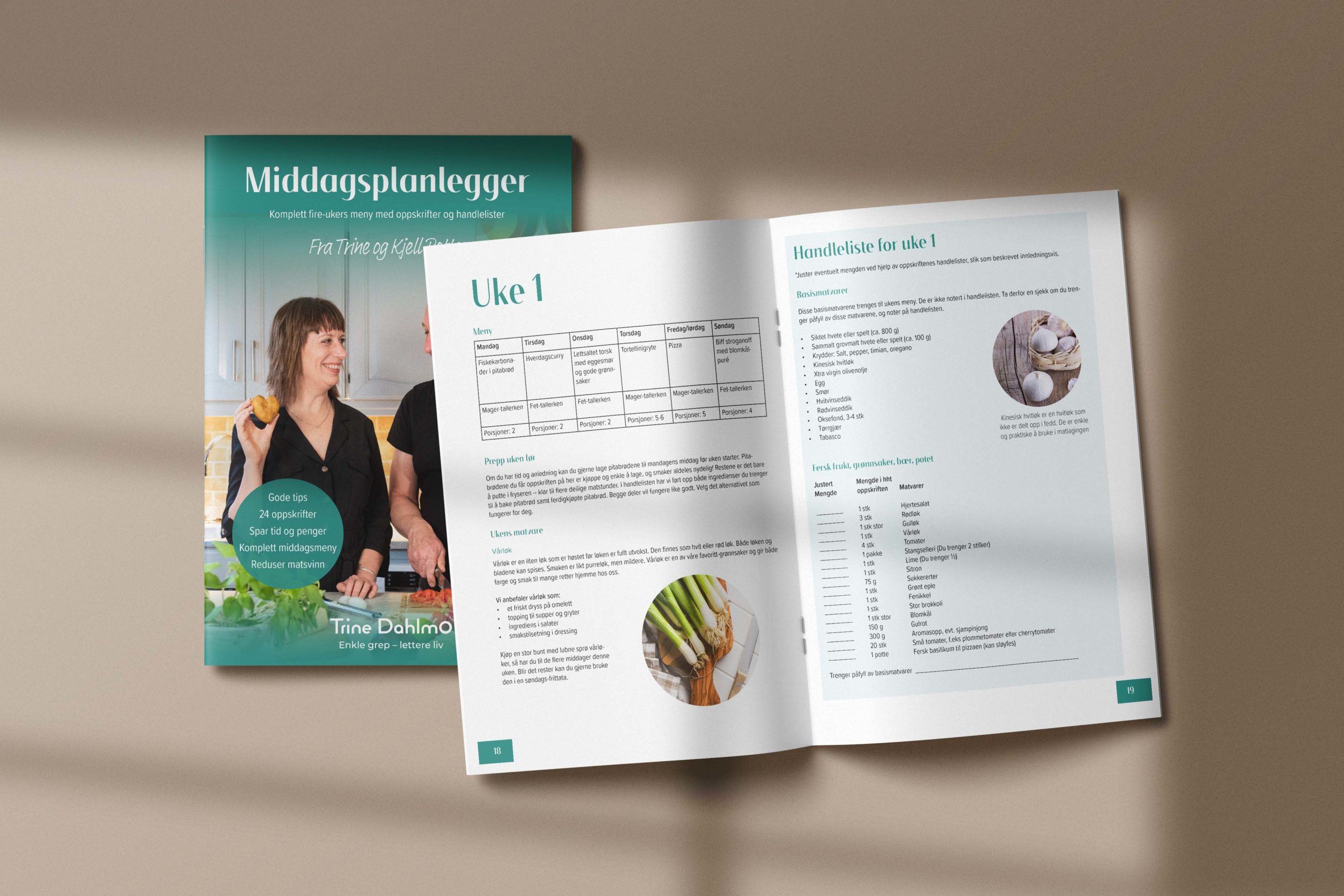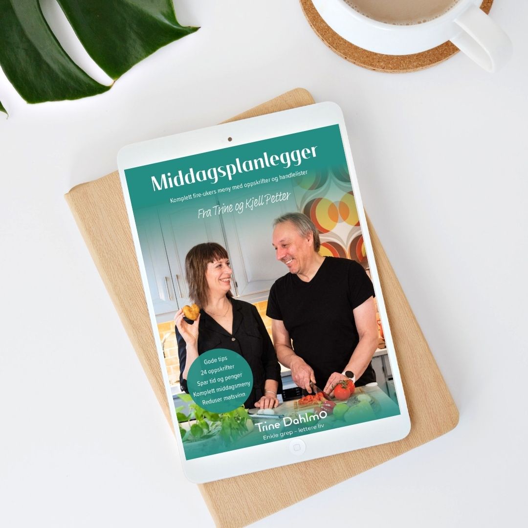 Middagsplanleggeren fra Trine og Kjell Petter er en komplett 4-ukers middagsmeny med oppskrifter og handleliste.
