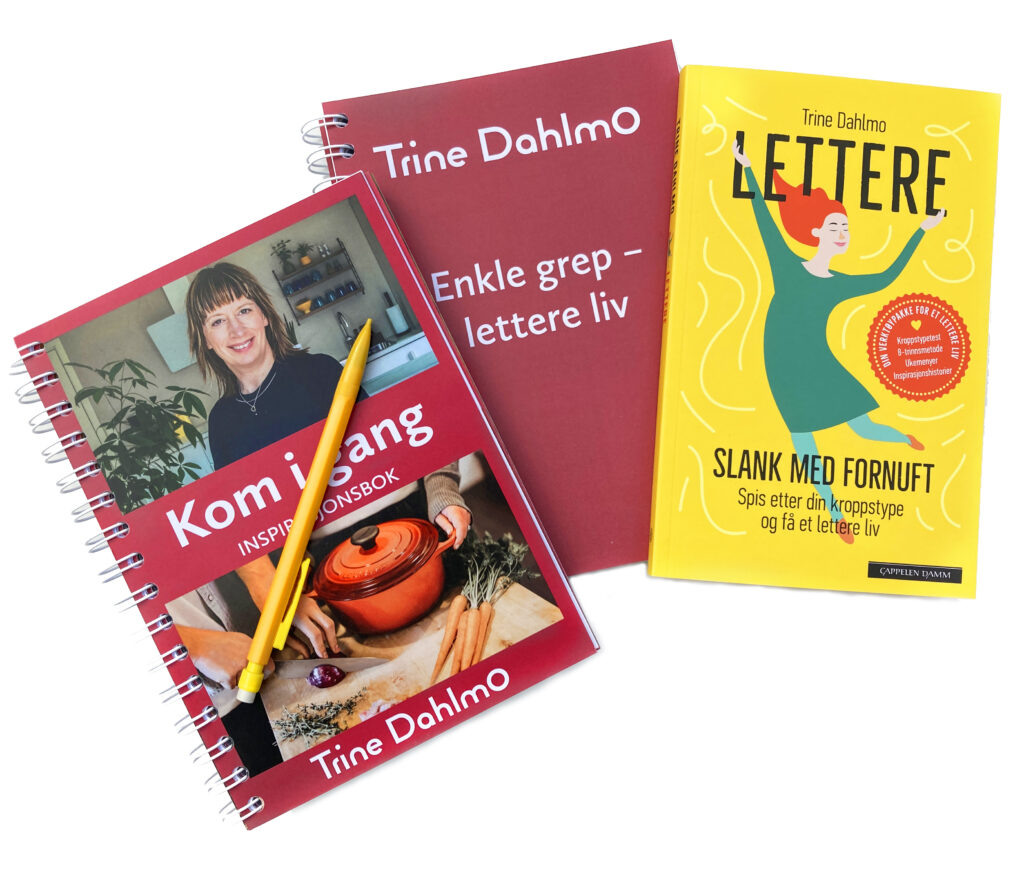 Trine Dahlmo-metoden er en kostholdstankegang som bidrar til matglede og mange valg. Derfor vil du kunne velge både karbohydratrike- og fete matvarer. Med noen enkel grep kan du nyte mat du liker, og kanskje spiser fra før og samtidig nå ditt vektmål. Trine Dahlmo-metoden representere » den brede vei». Vil du se på oppskrifter fra Trine Dahlmo finner du det her.